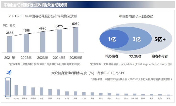 水一涵指出,2025年运动鞋市场的“内卷”将进一步升级,“尽管2020年以来受疫情冲击市场规模有所下降,但现在正处于回升的转折阶段。我们对市场未来是看好的,预计未来几年运动鞋服市场将维持2位数增速。从数据上看,到2030年市场规模会达到7000亿元左右。”